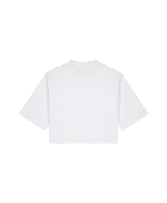 Oversized, boxy women’s fit — cropped through the body with a structured, fashion-forward silhouette.